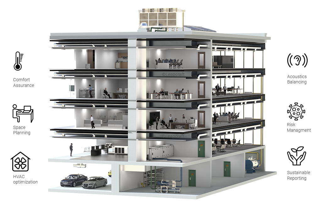 Our solutions help you forecast the risk of airborne diseases, mould and contaminants to enable safe workspaces.