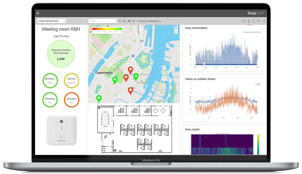 Benchmark and measure your facility in realtime for optimal air quality, thermal comfort and acoustics.